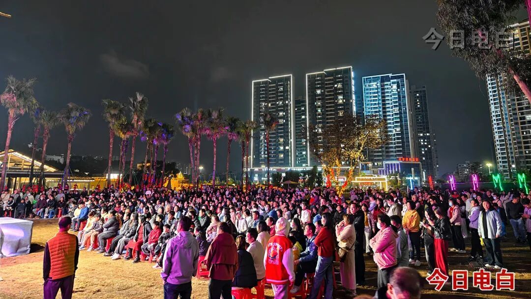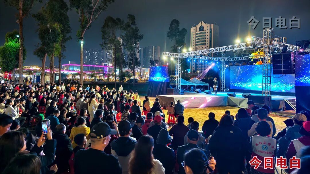 3月4日(正月十六)晚,在电白“水东故事”项目现场举办的“喜迎省运会 精彩新水东——2026年‘艺动新春 梦圆省运’”文艺汇演、公益电影放映及非遗表演活动热闹启幕,现场人山人海,人气爆棚,进一步点旺了打卡点烟火气,为水东乡村夜晚点亮了别样的文化光彩。活动由区“百千万工程”指挥部办公室、区委宣传部、“精彩省运会 魅力新电白”专项行动专班办公室、区文化广电旅游体育局指导,水东街道党工委、办事处主办。