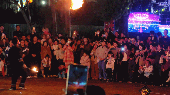 文艺汇演中,歌手们演绎劲歌金曲的动人歌声、魔术师的神奇变幻、川剧的精彩变脸,加上现场喷火、火棍、打铁花、游鱼灯等特色非遗节目接连上演,吸引大批市民前来观赏打卡。活动创新推出“公益电影+非遗展示”特色融合模式,将非遗展演与露天电影放映有机结合,让传统光影与本土非遗同频共振这一新颖的文化体验模式深受广大市民喜爱,为乡村夜晚增添了浓郁的文化氛围。