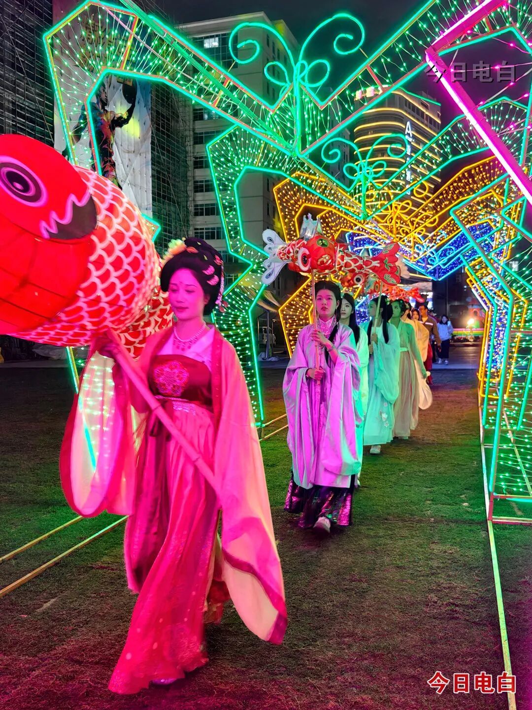 除了精彩的文艺汇演、播放电影和非遗表演外,现场还打造了灯海、时光隧道、灯塔等梦幻灯光景观,一步一景、流光溢彩,成为市民打卡拍照的热门网红点位。配套业态更是一应俱全,桃花岛餐吧、咖啡屋、非遗文化美食街、儿童游玩区全面开放,让市民在观赏非遗、观看电影的同时,尽享美食、休闲、亲子互动游玩的多重乐趣。